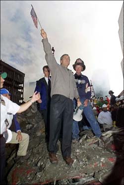 이 추락의 과정을 우리는 말해진 것, 또는 말해지지 않은 것에서 찾아볼 수 있다. 미국의 전쟁준비 과정에서 미묘한 두가지 변화가 일어났다. 하나는 정치적 수사에서 왔고, 다른 하나는 정치적 침묵에서 벌어졌다. 당초 미국의 대아프간 전쟁의 작전 명칭은 '무한정의'(Infinite Justice)였다. 이 작전 명은 탄저균 테러의 와중에서 '지속 가능한 자유'(Enduring Freedom, 사실 정확한 번역 명은 다소 어색하긴 하지만 직역하면 '참아 견디어내는 자유'라고 해야한다)로 바뀌었다. 이 미묘한 작명의 변화는 사소한 것은 아니다. 첫째, 이 변화된 명칭은 전쟁수행 주도자들의 의도를 보여준다. 무한정의는 서구 전쟁 전통에서의 '정의로운 전쟁'의 문제를 포함한다. 따라서 미국이 스스로를 '절대선'과 '정의'로 간주한다면, 그래서 상대방(알케다와 탈레반)을 '절대악, 부정의'로 규정한다면, 국제정치의 담론에서 불필요한 문제들을 만들게 된다. 무엇보다도 이 명칭은 '영구전쟁'의 이미지를 불러온다. 미국이 설혹 영구전쟁을 하더라도 그것은 평화의 이름으로 수행돼야 하는 것이다. 전쟁의 이름으로 선포되는 전쟁은 미국이 현재 단계에서는 반드시 필요로 하는 국제사회의 협조자들, 하수인들을 동원하는데 불필요한 반발들을 증폭시킨다. 더구나 이 전쟁의 정당성은 미국의 '보복할 권리'에 있지, 미국의 '옳고 그름'에 있지 않다. 미국이 자신을 정의로 규정하는 순간, 국제정치 무대에서 미국의 대외정책은 토론의 도마 위에 오른다. 미국의 전쟁의 목표는 전쟁을 불러일으킨 원인들을 제거하는데 있는 것이 아니라 전쟁을 수행할 적들을 섬멸하는데 있는 것이다.