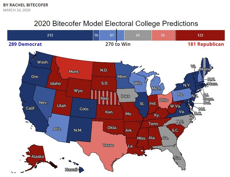 비트코퍼는 그녀의 분석을 토대로 민주당 후보자가 결정되기도 전인 2020년 2월에 이미 민주당의 승리를 예측했다. 왜 그랬을까? 2019년 7월 CBS 뉴스의 여론조사 결과, 바이든을 지지한 민주당 유권자 중 75%가 그 이유로 ‘트럼프에게 이길 것 같다’를 들었다. 비트코퍼는 여기에서 반트럼프 진영으로 집결할 수 있도록 활성화된 민주당 유권자를 발견했다. 그래서 바이든이 대선후보로 나가 트럼프를 꺾을 수 있다고 예견했다. 실제로 2019년 9월에 있었던 버지니아 주를 비롯한 5개 주 의회 선거에서 민주당 유권자의 분노투표 양상이 나타나 투표율이 상승하고(2015년 29.1%→2019년 43%) 전통적인 공화당 주에서도 공화당은 패배했다. 종합해보면, 2016년 선거에 이어 2020년 선거도 중도층을 어떻게 지지층으로 데려올 것인가라는 전통의 구도에서 벗어난 셈이다.
