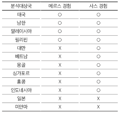 따라서 이 글에서는 정치문화적 차이가 적은 동아시아와 동남아시아 국가들을 대상으로 한다. 뒤에서 살펴보겠지만, 일본을 제외하면 동아시아와 동남아시아 국가들의 개인주의적 성향은 대동소이하다. 메르스나 사스에 대한 대처 경험도 비슷하다. 따라서 정치문화적 차이를 고려하지 않아도 분석의 타당성을 일정 수준 확보할 수 있다.