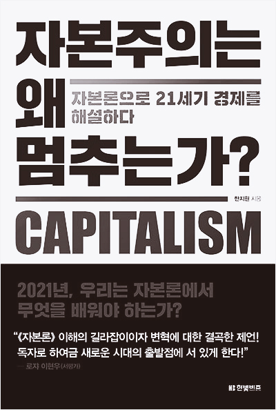이런 혼란 속에서 등장한 한지원의 『자본주의는 왜 멈추는가』는 대담하게도 누군가에게는 이미 식상하고, 누군가에게는 거리두기의 대상인 ‘카를 마르크스’를 호명하며 그의 저작인『자본』을 통해 현재 시대의 경제현상에서 나타나는 자본주의의 근본적 결함을 분석한다. 동시에 그 경제현상들에 대한 주류경제학의 관점과 분석을 비판해 『자본』의 부제인 ‘경제학 비판’을 본인의 책과 훌륭하게 매칭한다. 저자가 마르크스를 빌어 사적소유와 상품시장을 절대화하는 경제학의 근본적 한계를 비판하는 작업은 ‘4차 산업혁명’ ‘비트코인’ ‘직장갑질’ ‘불평등’ ‘건물주’ ‘임금주도성장’등 최근 논쟁거리가 되었던 경제현상에 대한 주류경제학의 부족한 설명을 속 시원하게 보완하기까지 한다. 마르크스·마르크스주의·사회운동에 관심이 없는 독자라도 시야확장에서 오는 쾌감을 느낄 수 있을 것이다.