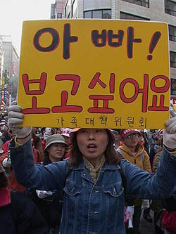 가족대책위 사람들은 말한다. “가진 자의 횡포 앞에서 다른 것 없어요. 가족들이 똘똘 뭉쳐서 싸우는 수밖에.. 크게 힘은 안돼도... 끝까지 싸워야죠.” “파출부라도 할거니까 민영화 막지 못하면 집에 들어오지 말아요. 민영화 저지는 가족만을 위한 것이 아니라 나라를 위한 싸움이기 때문에 민영화를 막지 못하면 결국 가족들도 나중에 살기 힘들어 질 것이기 때문에...". 막강한 힘과 권력을 가진 자들 앞에서 똘똘 뭉치는 연대의 전술은 사회적 약자들의 오래된, 그리고 가장 막강한 무기이다. 남편이 가져오는 봉급에 가족의 생계가 달려있는 상황에서 “결국 가족들도 나중에 살기 힘들어 질 것”이라는 말은 현실을 반영한 솔직한 고백이다. 그러므로 현재 가대위의 투쟁은 가족이라는 ‘하나의 생계단위’를 형성한 사람들의 생존권 투쟁인 것이다. 그러나 가대위의 투쟁이 생존권 싸움이라 하여 무조건적인 지지만을 보낼 수는 없다. 왜냐하면 앞서도 잠시 언급했듯이 가족의 생계가 남성 생계부양자에게 전적으로 의존하도록 한데에는 역사적으로 자본주의와 가부장제의 부정한 결탁이 있었기 때문이다. 보다 정확히 말하면 자본이 가부장제를 적절히 활용한 것이라고 할 수 있다. 자본은 노동자의 재생산노동에 지불하는 비용을 최소화하기 위해서 ‘가족’이라는 혈연적 집합체를 생산체계 내에 편입시켰다. 그리고 그것은 가족임금제를 통해 남성에게 한 가족의 ‘생계부양자’의 지위를 줌으로써 가능했다. 이로써 자본은 재생산 노동에 부담해야하는 비용을 절감했다. 뿐만 아니라 생계 부양의 논리를 적용하여 자본의 필요에 의해 여성을 노동시장으로 유인해낼 때 여성의 노동권을 생계보조적 의미로 해석하고 이를 통해 여성의 임금의 저임금화를 정당화해냈다.