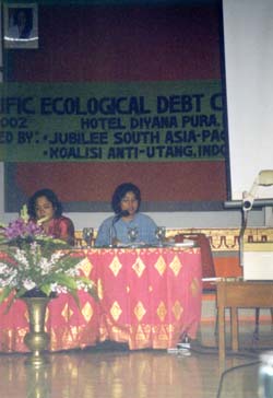 아시아-태평양 지역 생태부채 회의는 생태부채에 대한 전반적인 문제틀 속에서 각 국의 사례가 제시되고 논의되었다. 10여개 국가에서 참가한 80여명의 참가자들은 공기, 삼림, 물, 에너지와 전력, 약품과 의료, 생물다양성, 토지, 농업과 식품 안전성, 탄광, 전쟁, 유독성 폐기물 등의 주제를 생태부채의 개념 하에서 조사하고, 문제점을 제기했다. 각각의 문제는 결코 따로 떨어져있는 것이 아니며, 어느 한 나라의 문제도 아니라는 것이 발제 때마다 확인되었다.
